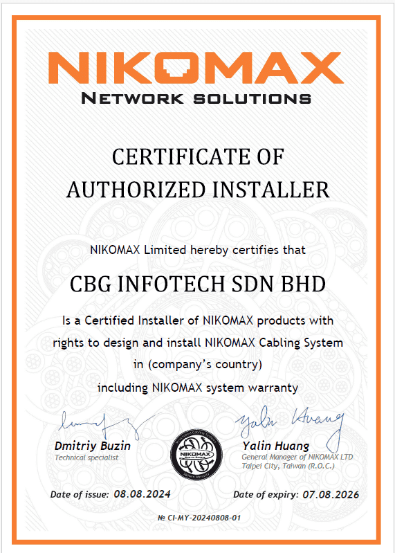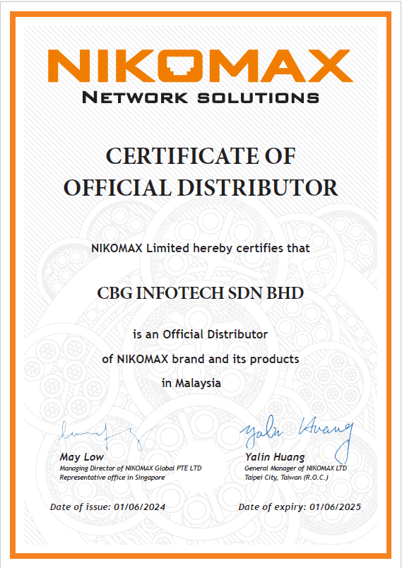 CBG Infotech Sdn Bhd an authorized valued distributor Malaysia by NIKOMAX GLOBAL, a Russia based Cabling Manufacturer has developed and produced cabling solution for high-end communication since 2003. With its high level of product quality and innovative, forward-looking system design, the company ensures that networks are future-proof and investment secure for long terms.
